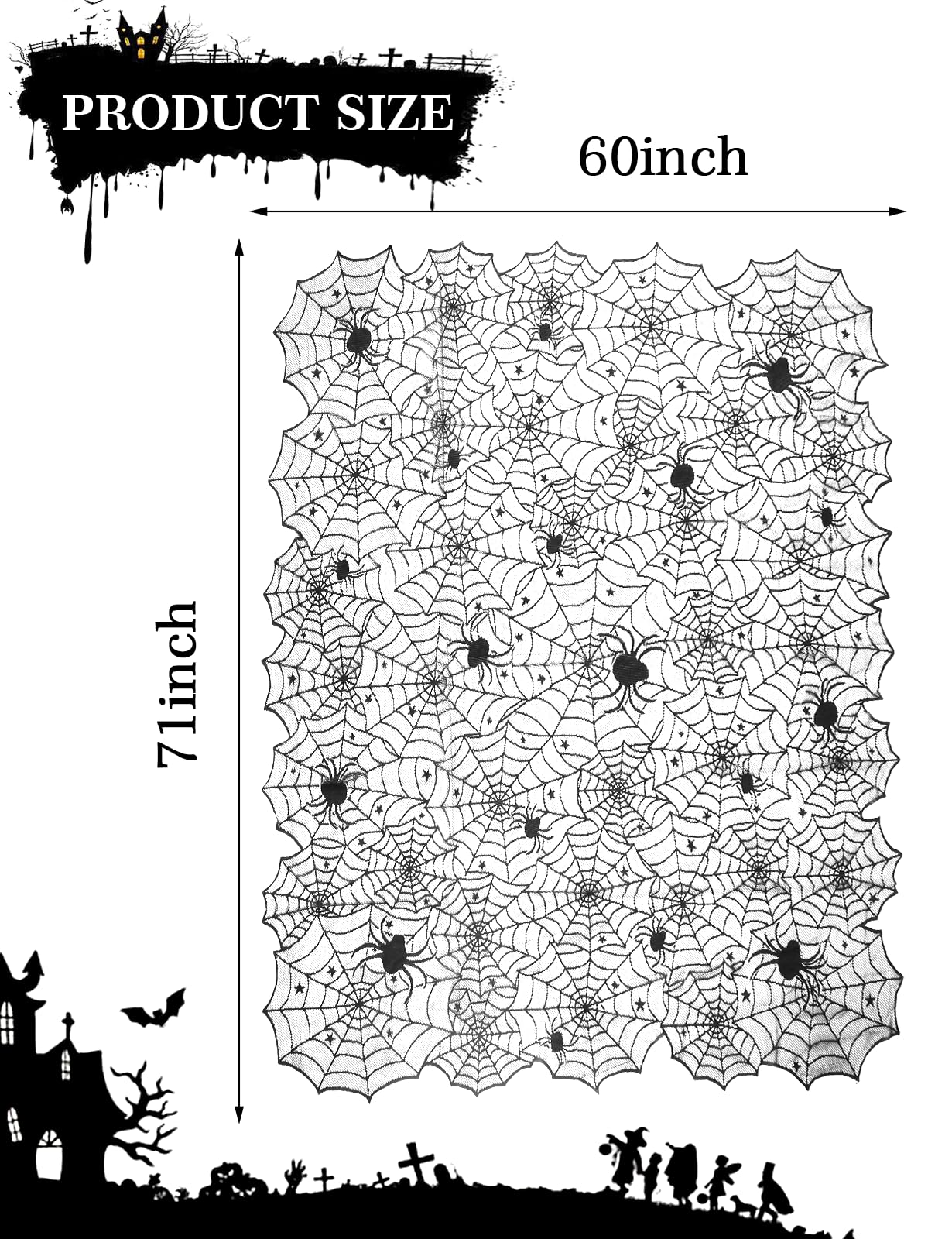 - 【PERFECT SIZE & WIDELY USAGE】-- The spider web table runner measures 13 x 72 inches approx which is great for about 4-6 table seats.Perfectly fits for dining table, coffee table, mantel,counter, fireplace,shelf, window,doorway,yard or as a background